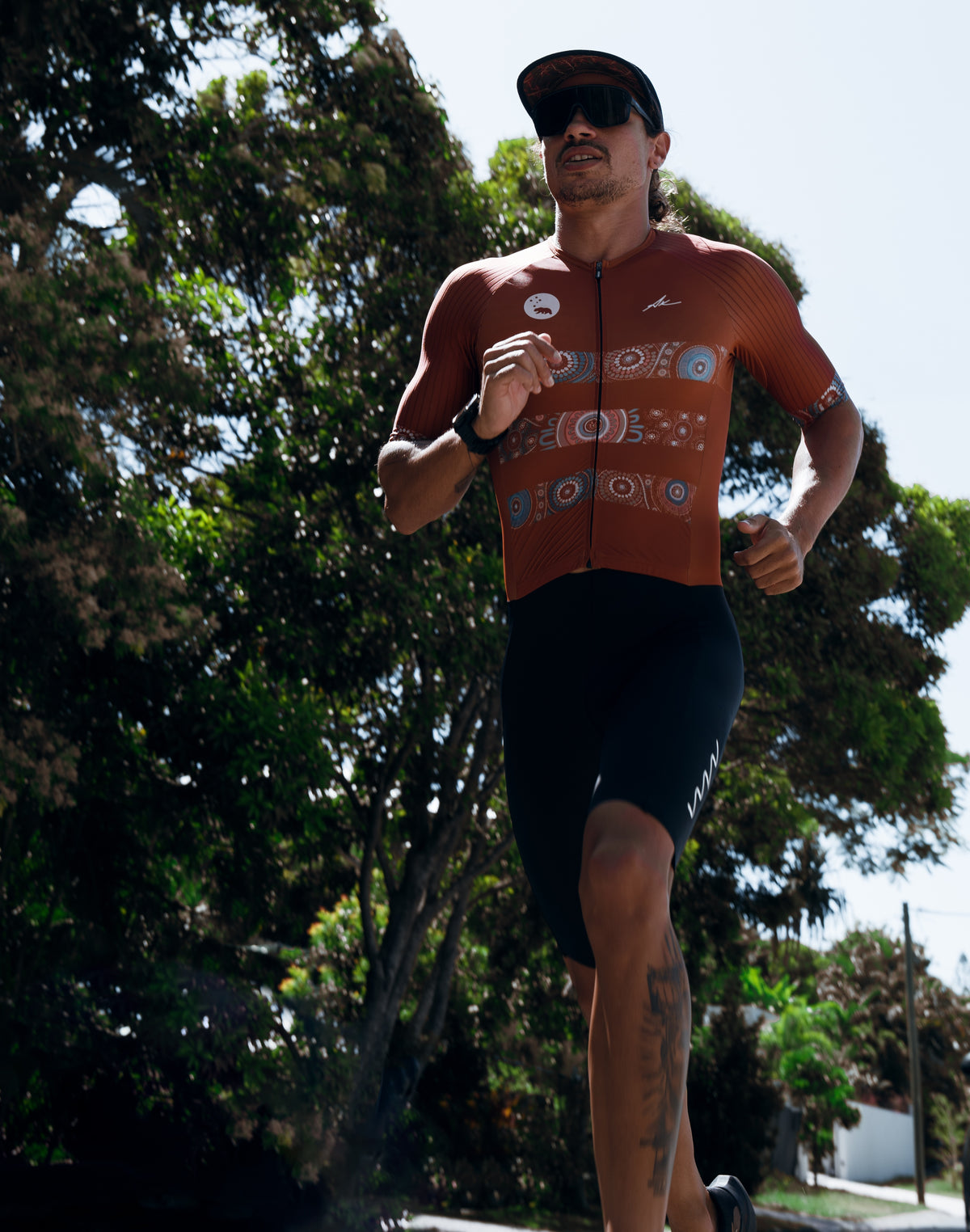Story telling opportunities exist everywhere and the community of endurance sport is so extremely accepting of First Nations culture, ideologies and artwork, that splashing our colours through clothing, kit, shoes, hats and everything in between helps to add to the already accepting and diverse array of people and cultures within endurance sport.
